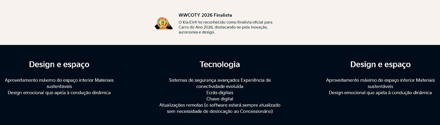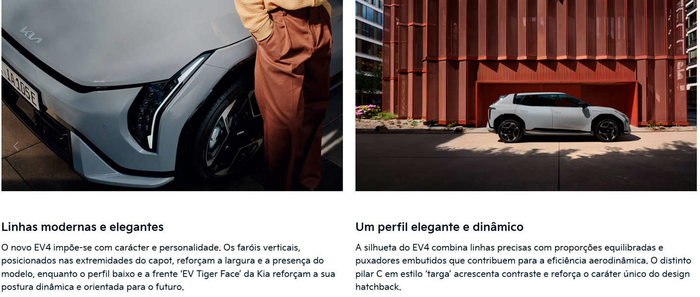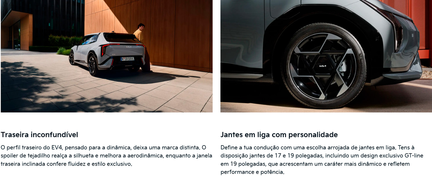 *Kia EV4 DRIVE (58,3 kWh), preço chave na mão, não inclui IVA, com pintura metalizada. Condições válidas para clientes empresa, e limitadas ao stock existente em Portugal Continental até 31/03/2026 (propostas para Ilhas acrescem despesas de transporte). Visual não contratual. Consumo Combinado WLTP (kWh/100km): 14,7 Emissões CO2 WLTP (g/km): 0. Kia EV4 FASTBACK GT-LINE (81,4 kWh) com 787km de autonomia elétrica máxima em ciclo urbano WLTP.