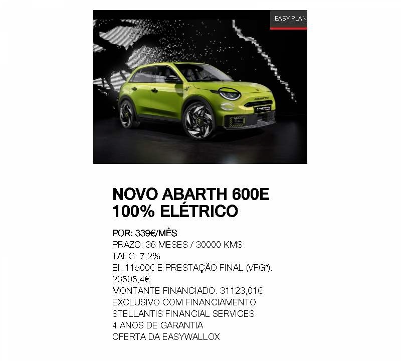 NOVO ABARTH 600e 100% ELÉTRICO Por 339€/mês + IVA