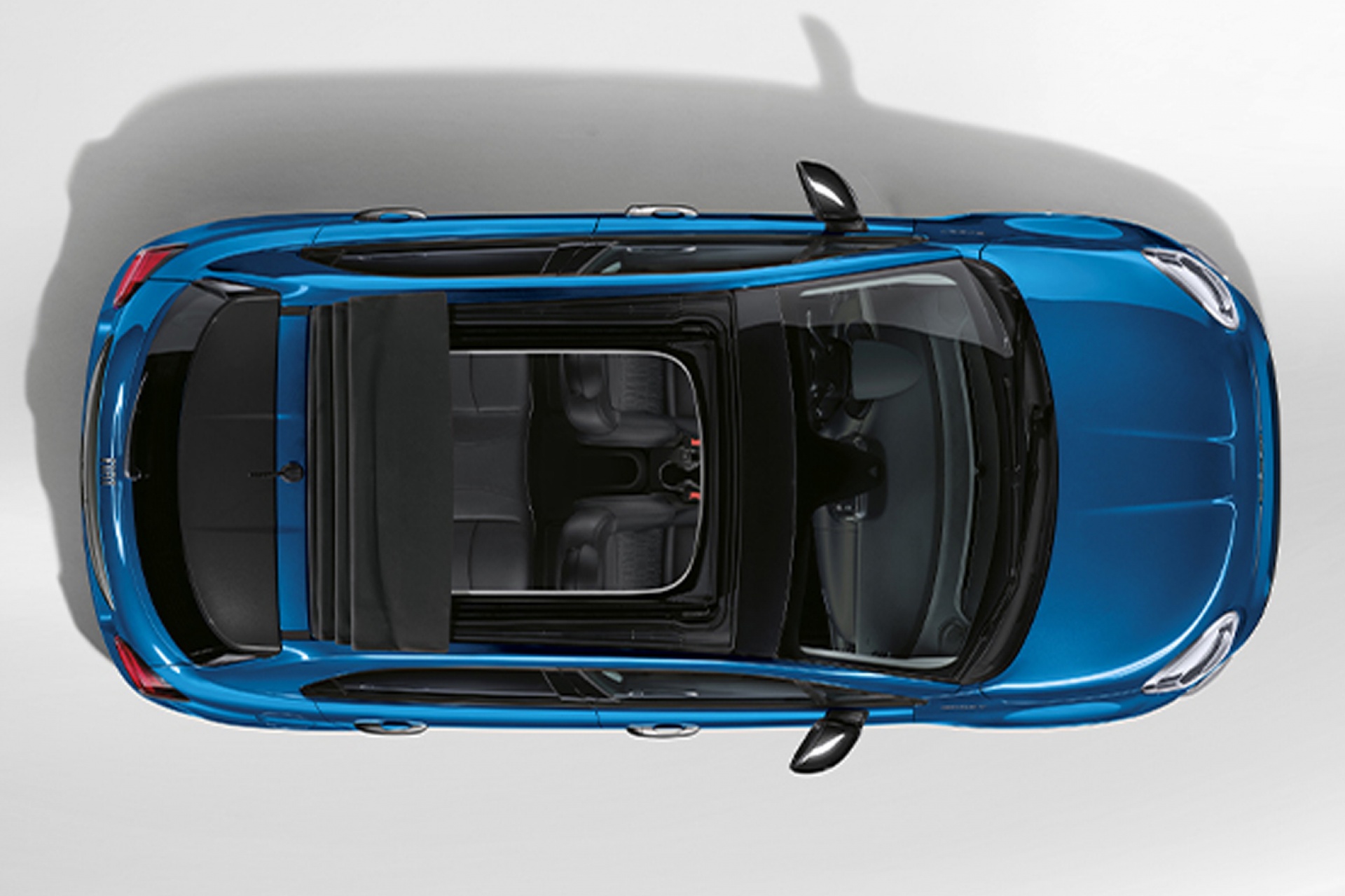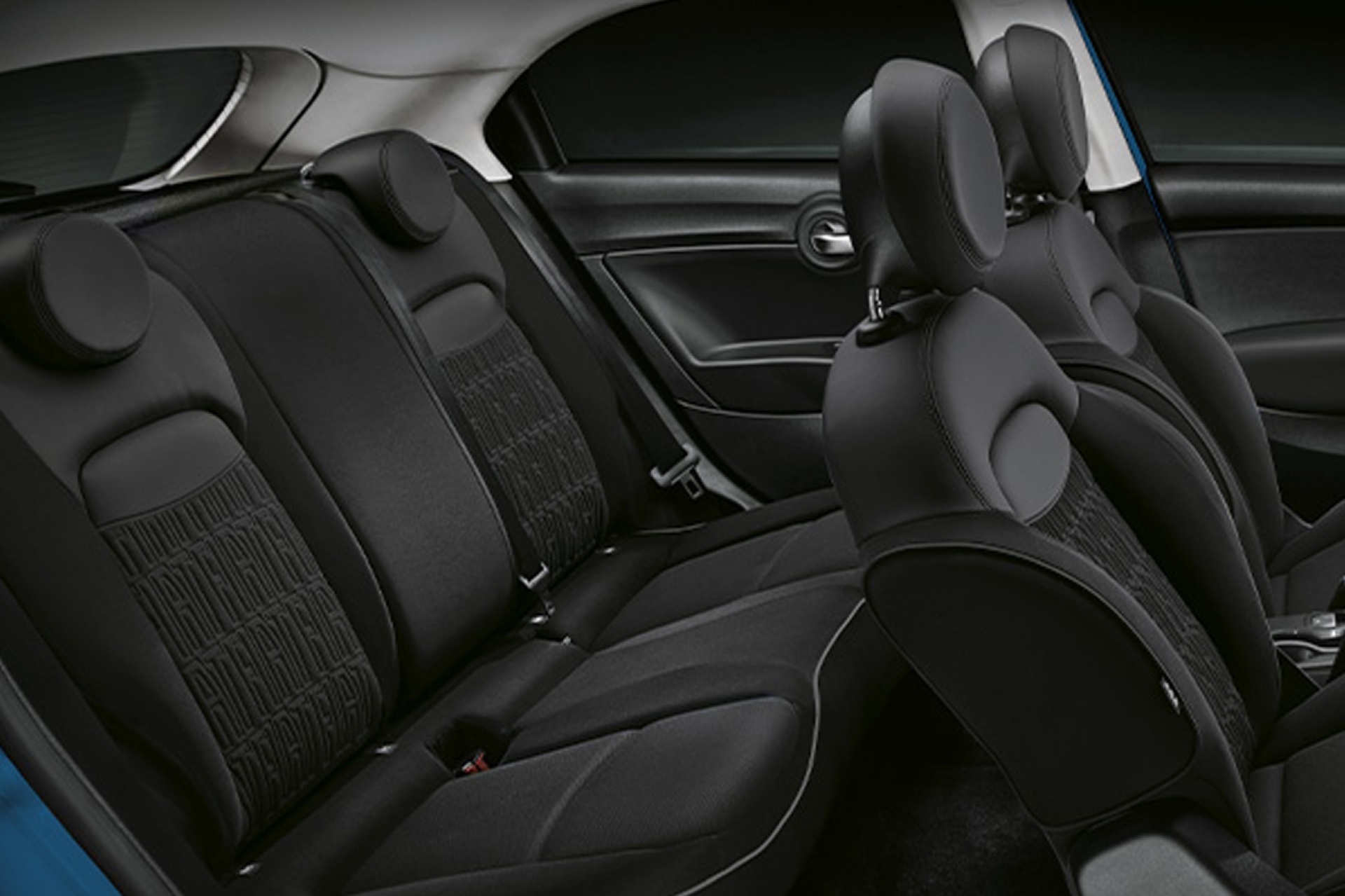 • Interiores específicos com bancos azuis com Monograma Fiat