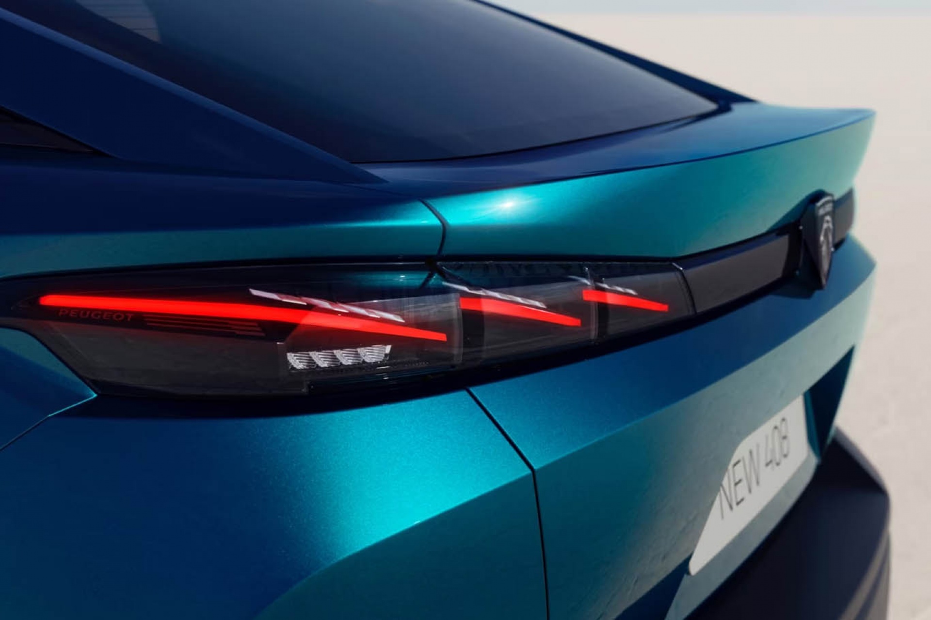 DESIGN DA TRASEIRA INESPERADO – O recorte invertido do para-choques traseiro do 408 é surpreendente. As inovadoras luzes traseiras full LED ou full LED 3D iluminam as 3 garras sequencialmente. Na parte de trás do tejadilho, as “orelhas de gato” dirigem o fluxo de ar externo para uma aerodinâmica otimizada.
