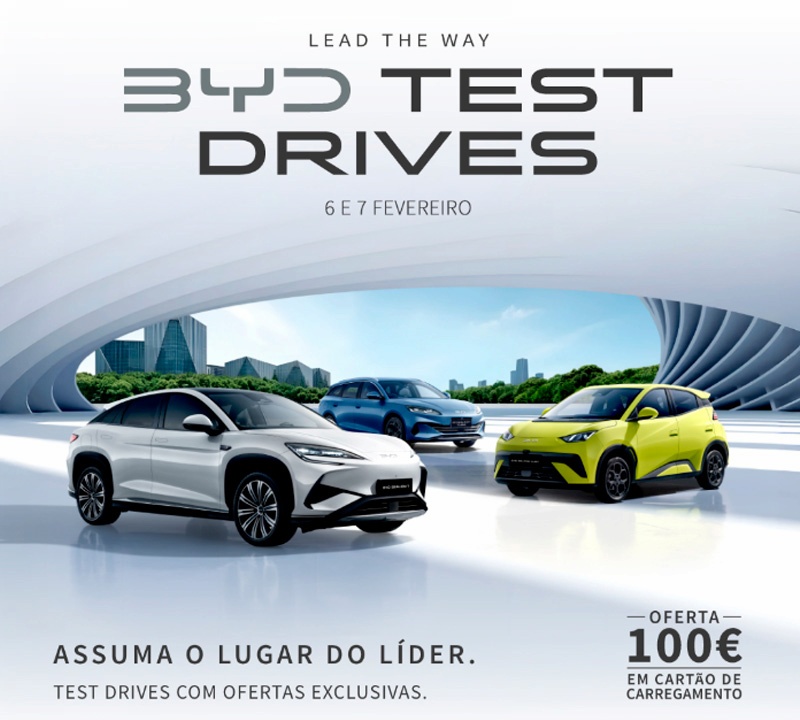Nos dias 6 e 7 de fevereiro, venha à MSCAR, participe na ação BYD TEST DRIVES e teste os modelos 100% Elétricos e Super Híbridos Plug-in da marca Líder Mundial em Mobilidade Elétrica.