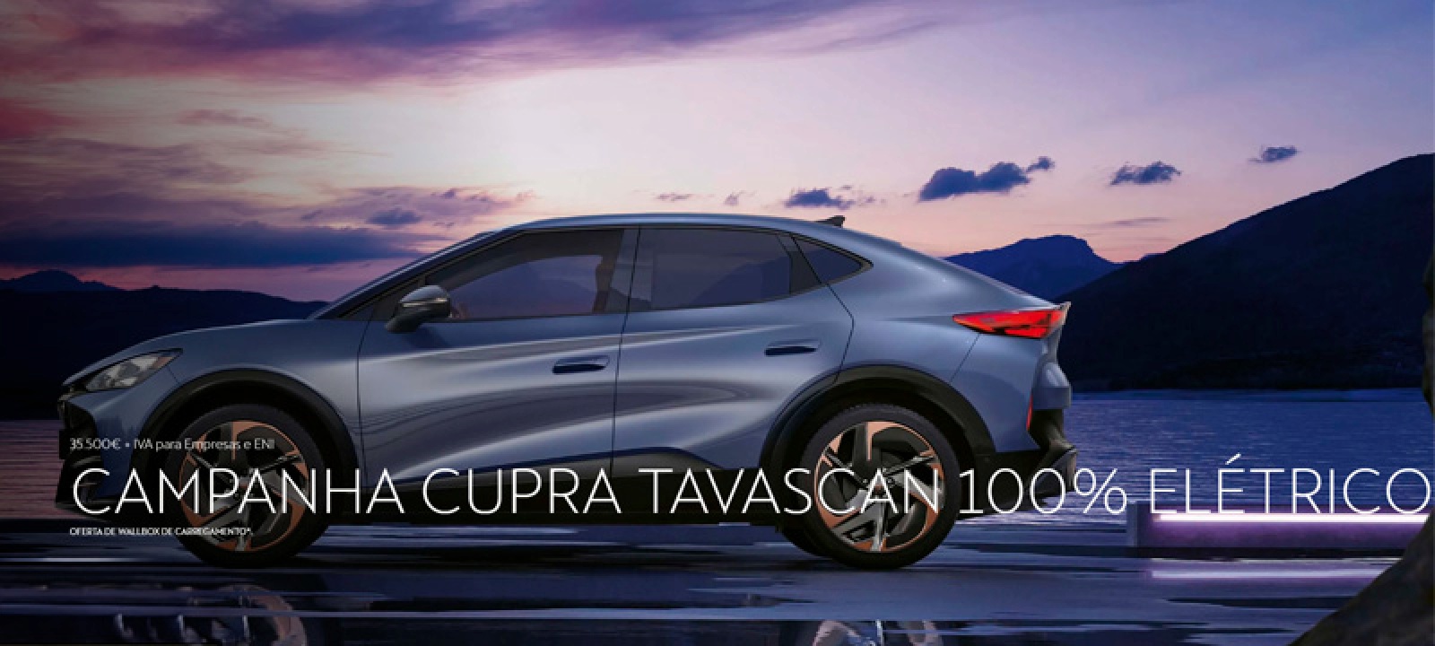 Campanha válida para Empresas e ENI - negócios fechados - até 30/03/2026 e limitada ao stock existente. Valor para Cupra Tavascan 77 kWh Endurance 286cv. Consumo combinado WLTP (kWh/100km): 15,9-17,7. Emissões CO2 (g/km): 0. Os valores de consumo elétrico indicados podem variar em função do equipamento selecionado. Imagem não contratual.