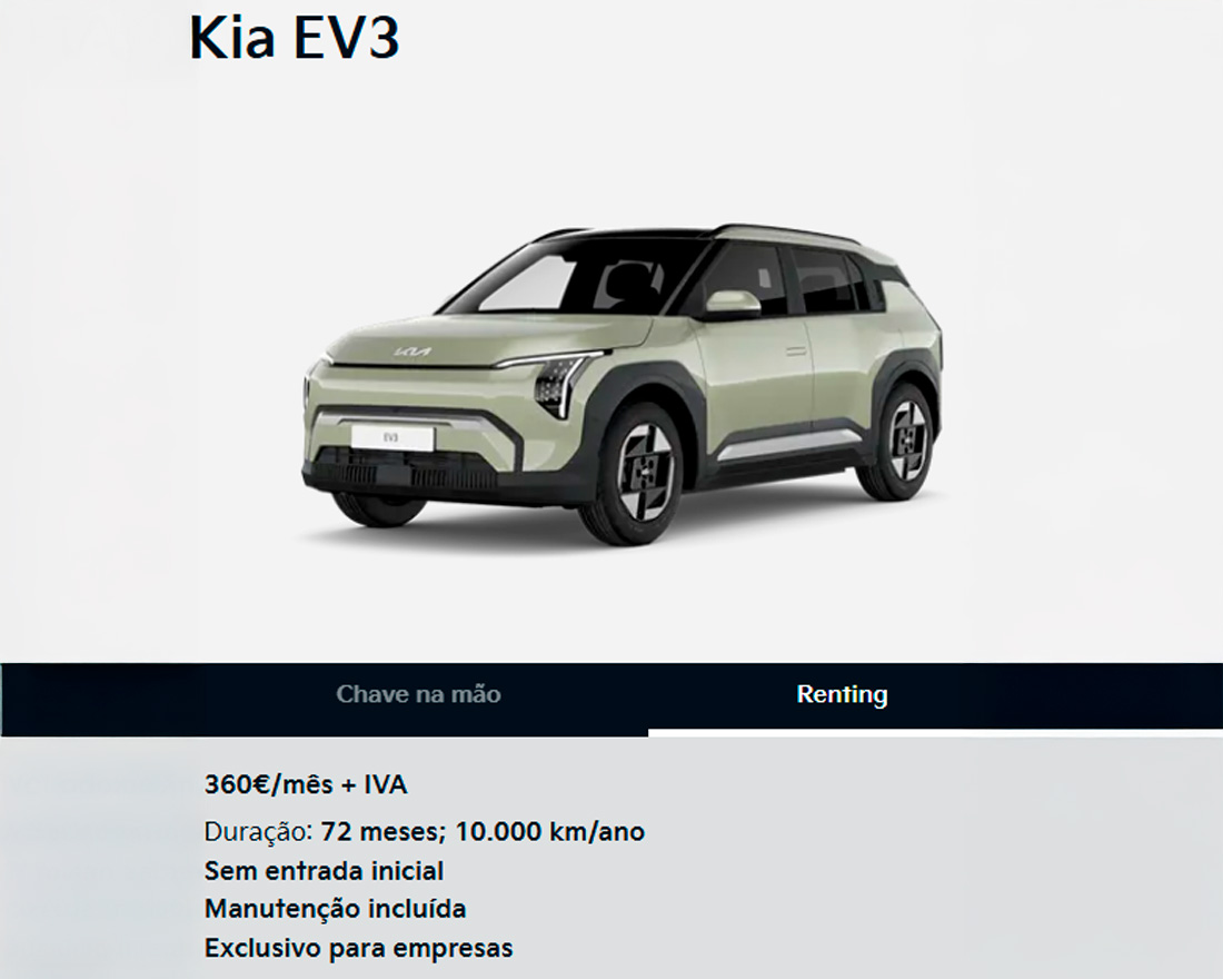 KIA EV3 - Renting desde 360€/mês + IVA*