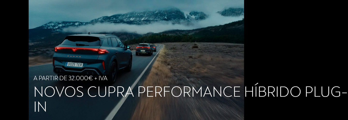 *** Campanha válida para Empresas e ENI - negócios fechados - até 30/03/2026 e limitada ao stock existente. Valor para CUPRA Formentor 1.5 e-Hybrid DSG 204cv. Consumo combustível combinado WLTP (l/100km):1,4 – 1,6. Consumo elétrico combinado WLTP (kWh/100km): 13,2 – 13,9. Emissões CO2 WLTP (g/km): 32 - 36. Imagem não contratual.