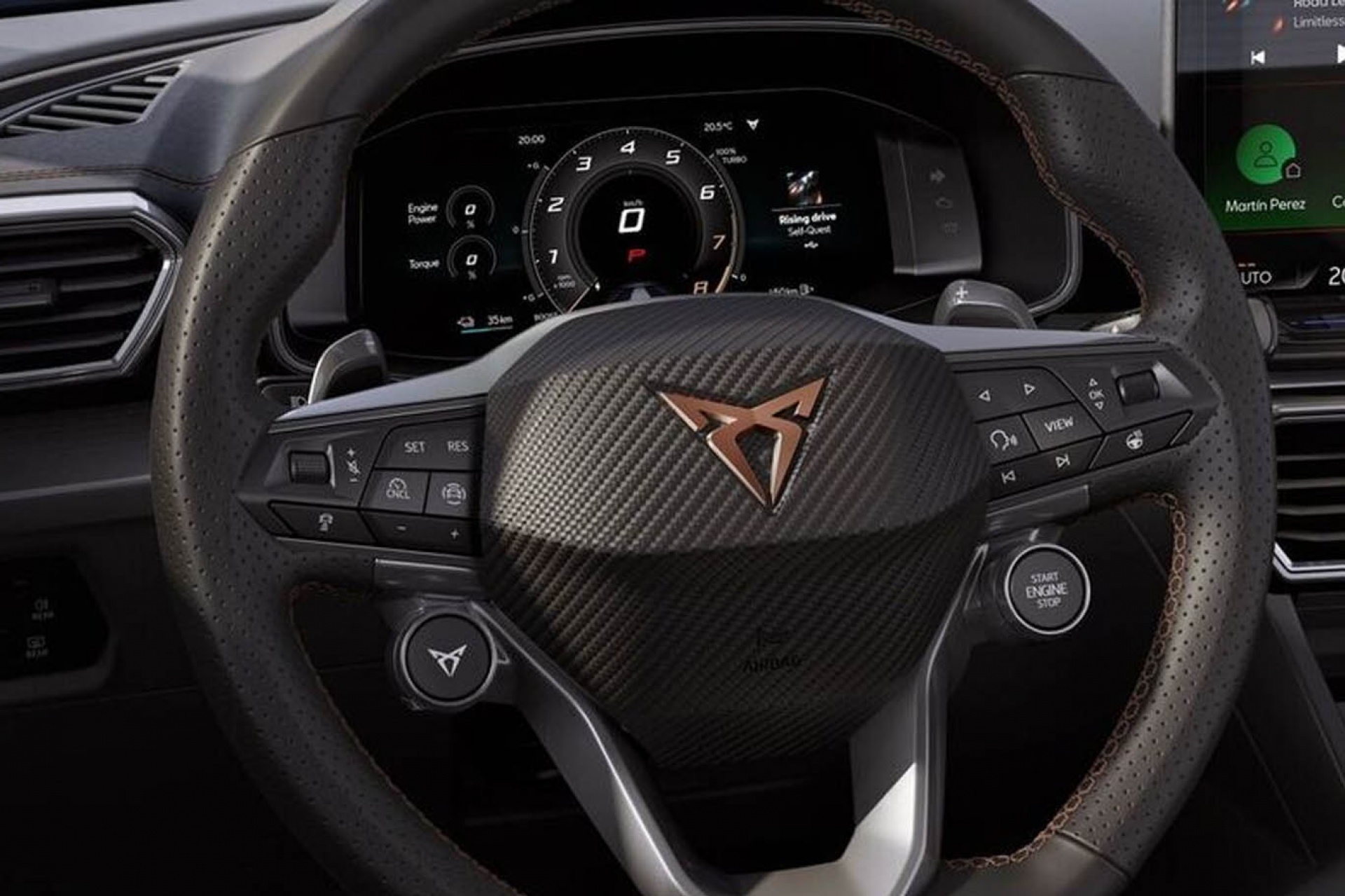 Volante CUPRA — Domine a condução. Agarre o volante multifunções, com acabamento de elevada qualidade em pele Nappa na cor preto.