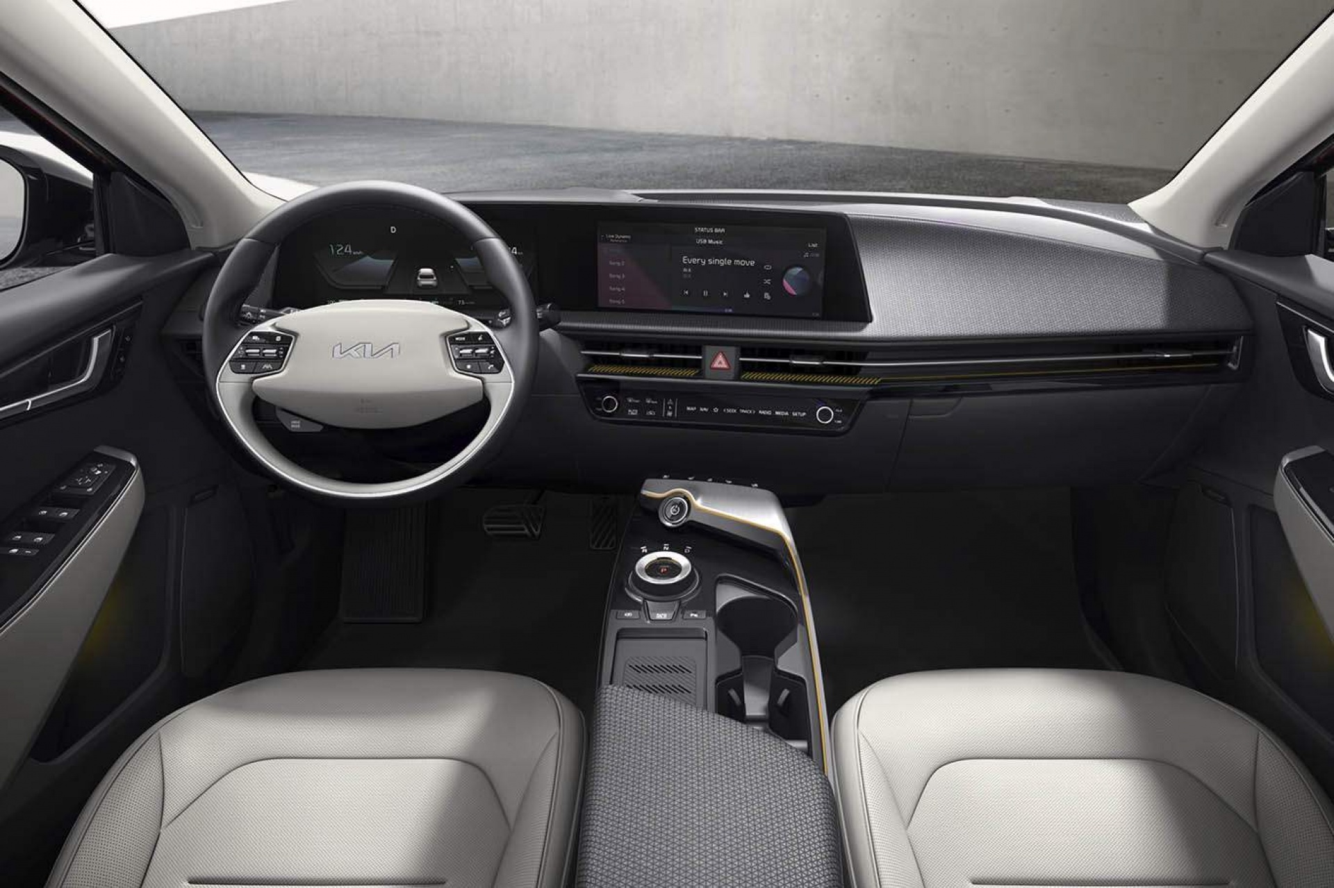 - Monitor duplo curvo de 12,3 polegadas, com painel de instrumentos e ecrã de infotainment. O ecrã curvo integrado do Kia EV6 GT não se limita a ser esteticamente perfeito: disponibiliza, também, todas as funções de condução, conectividade e entretenimento de que o condutor possa necessitar, sempre com uma nitidez impressionante. O ecrã panorâmico e o painel de instrumentos, simples e de fácil utilização, oferecem ao habitáculo uma sensação de alta tecnologia e minimalismo.
