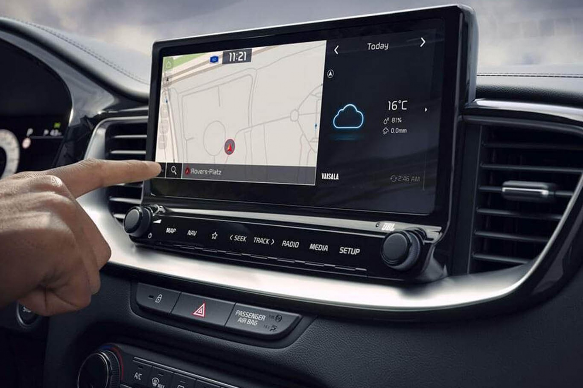 O nosso sistema de navegação, com Kia Connected Services apoiados pelos Serviços Live da TomTom, transporta a navegação por satélite para o próximo patamar de precisão e excelência. Com efeito, este sistema não só assegura a manutenção do contacto com o exterior como oferece mais informações úteis do que nunca. No centro de toda esta tecnologia está uma unidade Wi-Fi, que permite a ligação do sistema de navegação à Internet através do smartphone* do utilizador.