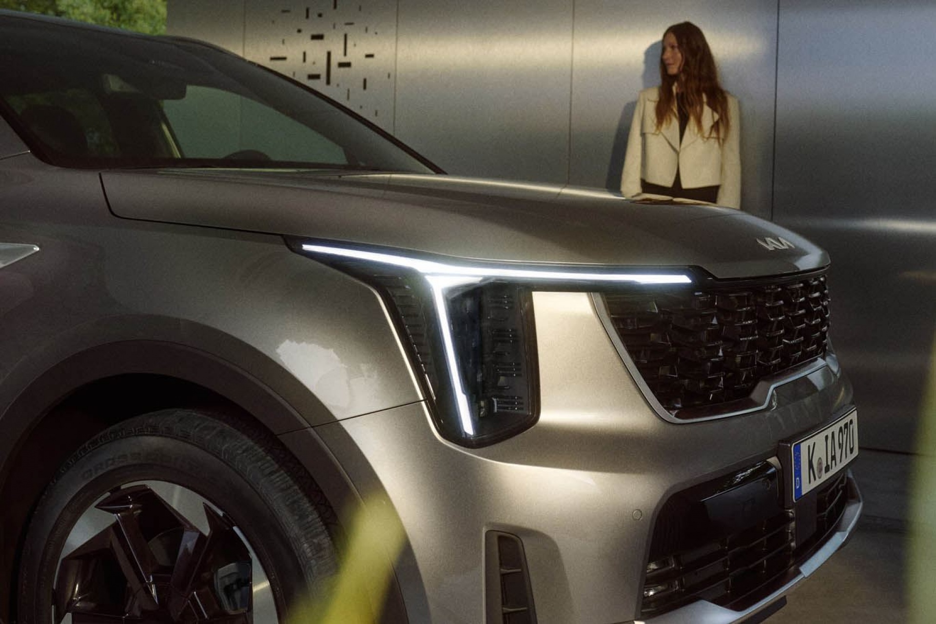 Uma frente com detalhes arrojados — Os faróis de LED ampliados apresentam um novo design vertical e uma faixa de luzes diurna com gráficos Star-map de última geração. A frente do Kia Sorento é ainda elevada pelo capô remodelado e uma grade radiadora impressionante.