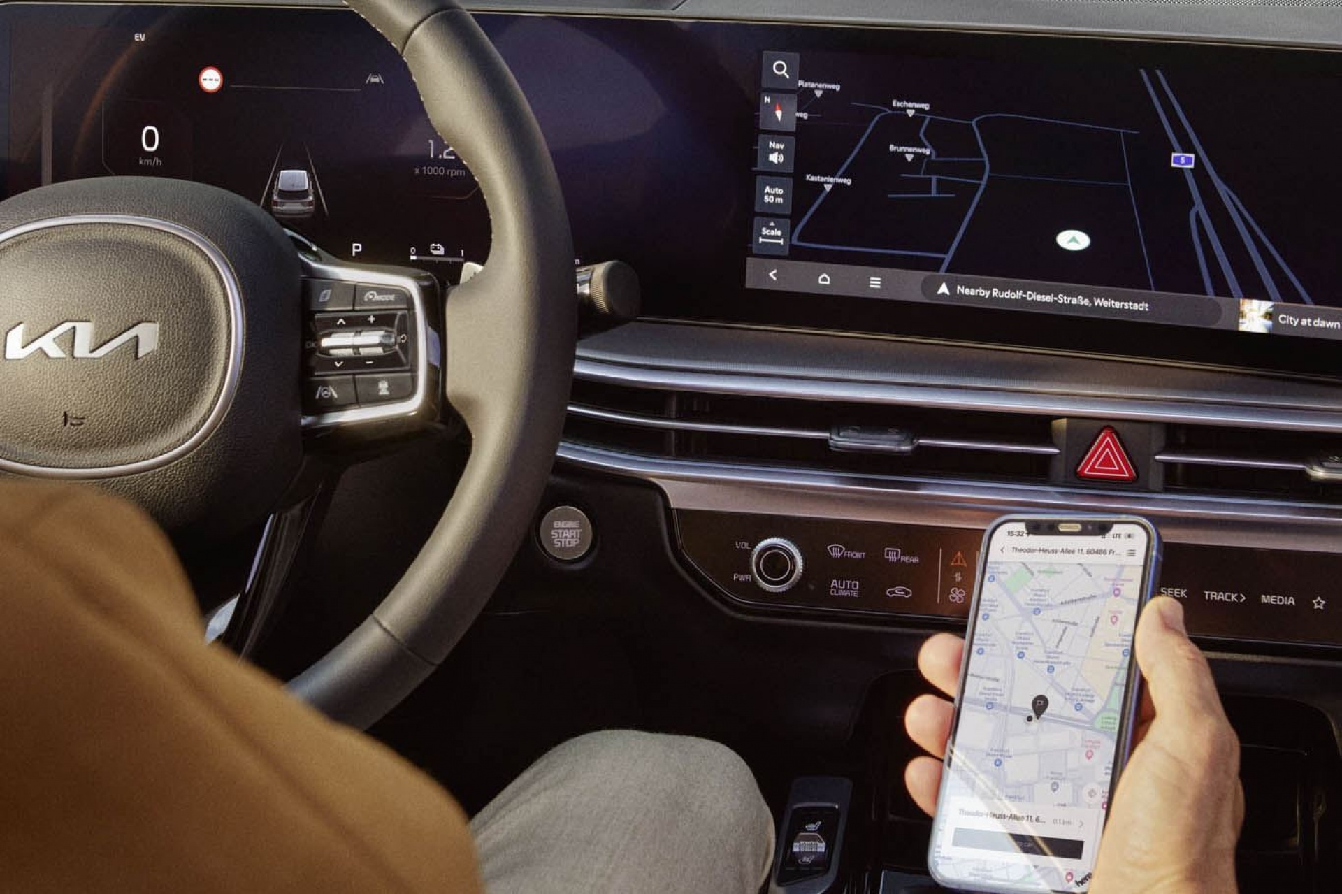 Kia Connect — Conecte o seu telefone facilmente ao Sorento através da aplicação Kia Connect e aproveite toda a conveniência, tranquilidade e apoio que merece. Atualize-se com dados de trânsito em tempo real, estações de carregamento próximas, estacionamento, clima e muitas outras informações úteis. Os serviços externos são igualmente úteis, como o controlo remoto da bateria, controlo de clima e Navegação de Última Milha (Last Mile Navigation).