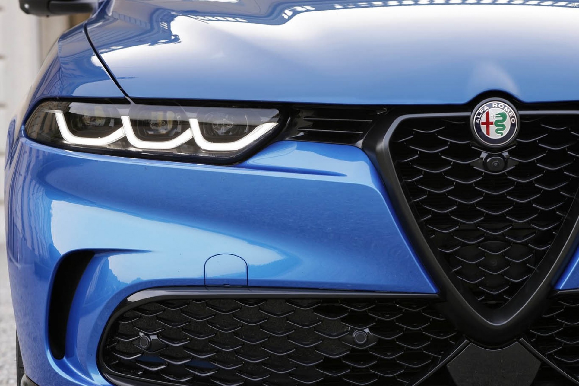 "O distinto escudo e os faróis Full LED Matrix 3+3, criam uma assinatura inconfundível, fiel ao puro ADN da Alfa Romeo."