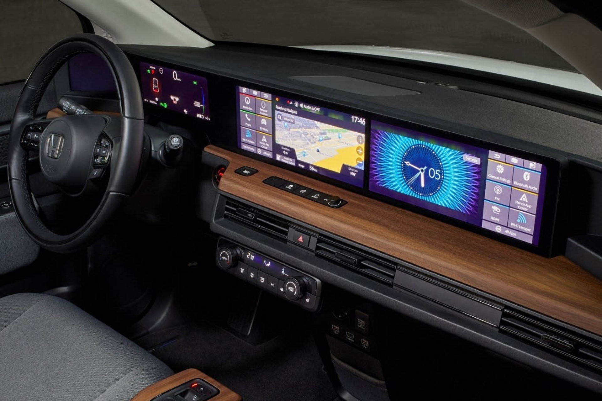 A aparência simples e distinta do Honda e foi alcançada através da integração de todas as suas funcionalidades. Os faróis dianteiros, os sensores de estacionamento e a câmara frontal, por exemplo, estão todos em um único painel. Duas câmaras compactas de alta-definição substituem os espelhos retrovisores convencionais e um teto panorâmico de vidro preto completa a sua aparência minimalista e agradável.