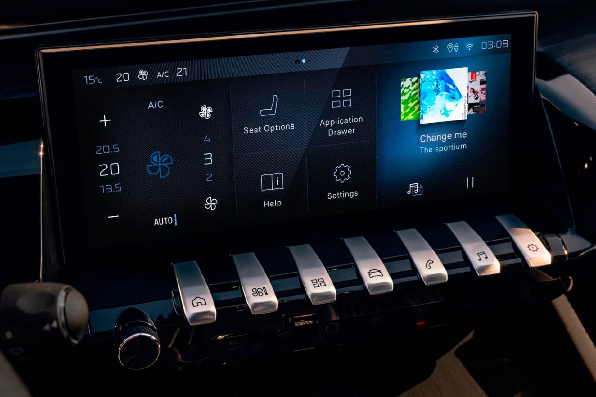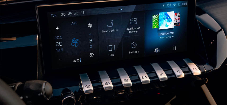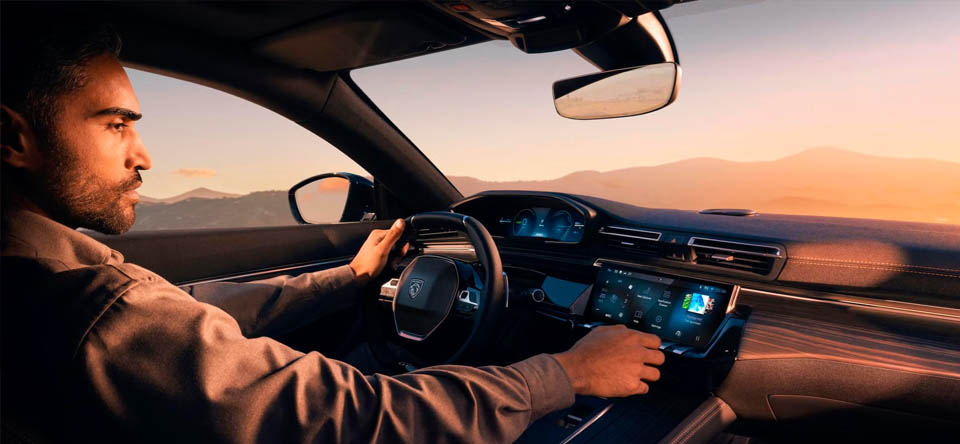 – Assuma o controlo do Peugeot i-Cockpit com o volante compacto, painel digital elevado configurável, ecrã tátil HD de 10’’ e elegantes teclas de piano. Com a tecnologia wireless Mirrir Screen, as aplicações compatíveis no seu smartphone serão exibidas sem problemas.