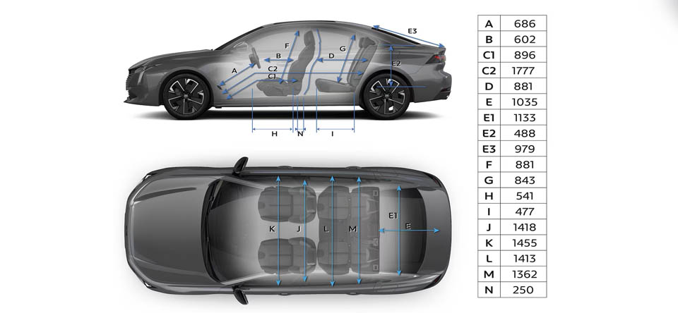 DIMENSÕES INTERIORES – No interior do 508 Plug-in Hybrid encontra todo o conforto e espaço de uma berlina.