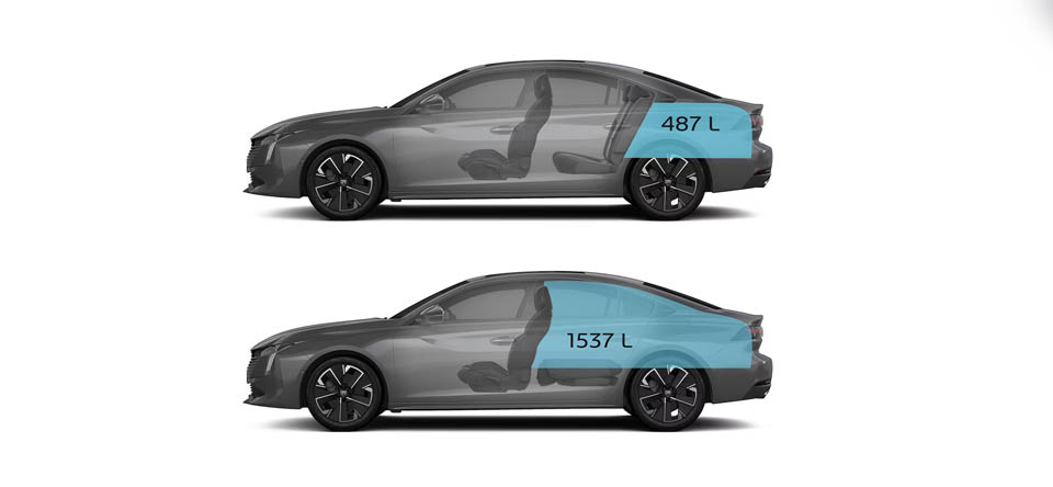 CAPACIDADE DA BAGAGEIRA DO 508 - A bagageira do 508 é grande e extremamente prática. Transforma 487 L em 1537 L com os bancos traseiros rebaixados.
