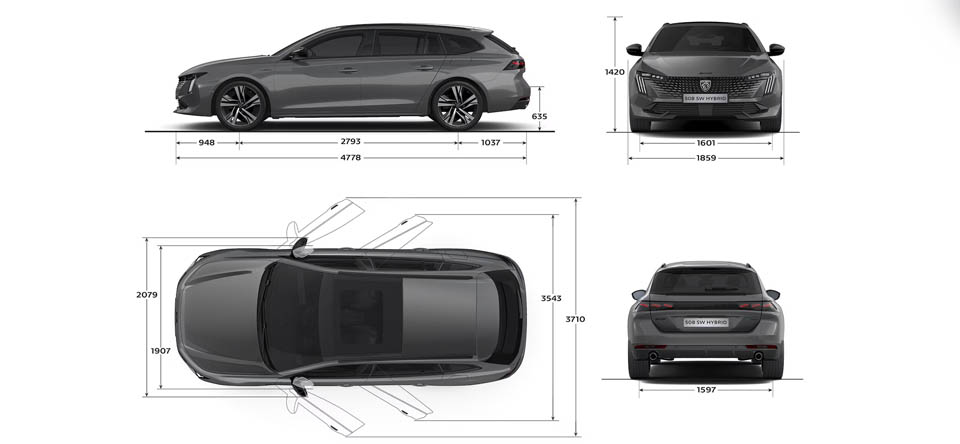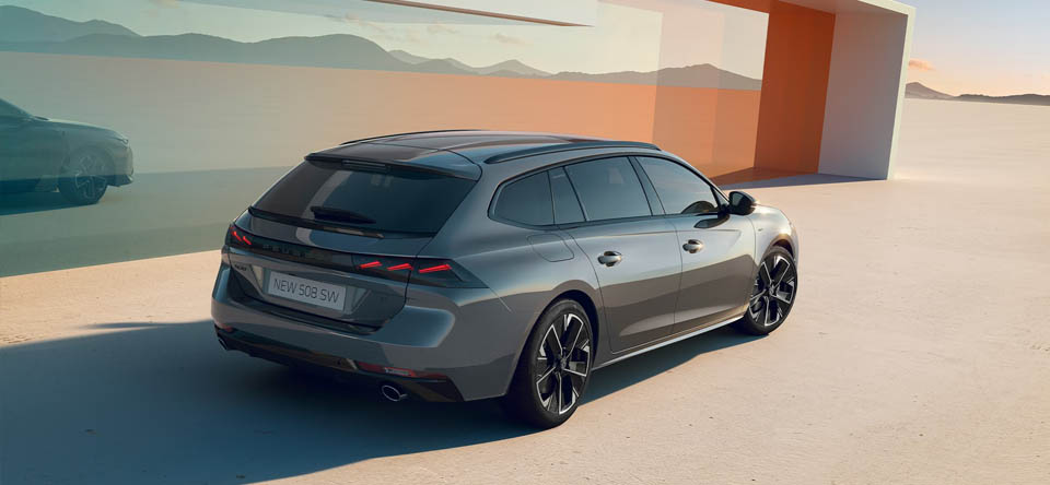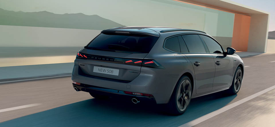 O novo PEUGEOT 508 SW é um carro elegante e aerodinâmico. O novo design frontal é cativante e dinâmico, destacando o caráter forte do carro e o novo logótipo da marca. Os LED de 3 garras à frente e os faróis Full LED de 3 garras atrás traduzem a dinâmica e a identidade do novo PEUGEOT 508 SW.